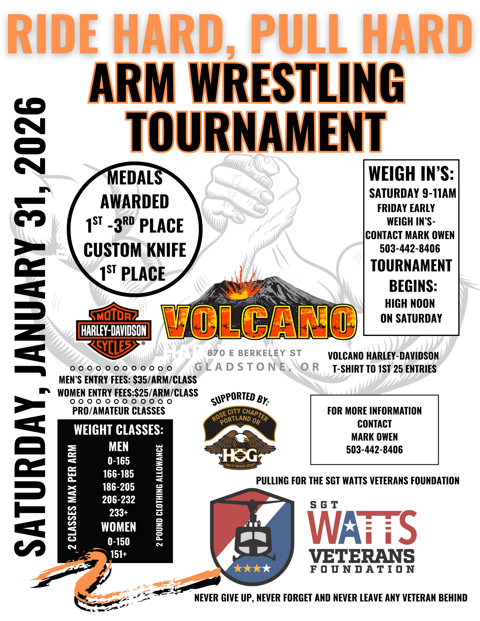Volcano Harley-Davidson is hosting the Ride Hard, Pull Hard Arm Wrestling event on Saturday, January 31st.